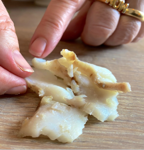 Så i denne opskrift har vi skiftet den ud med fisk – alle former for hvid fisk fungerer: rødspætte, søtunge, torsk etc. En håndfuld rejer gør ikke retten værre!